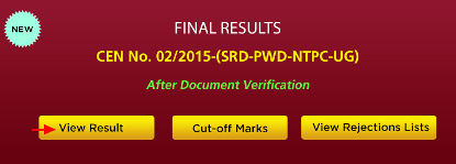 Select the ‘Final Results of CEN No. 02/2015 (SRD-PWD-NTPC-UG)’ results link (You can also check the exam Cut-off marks, Rejection Lists),